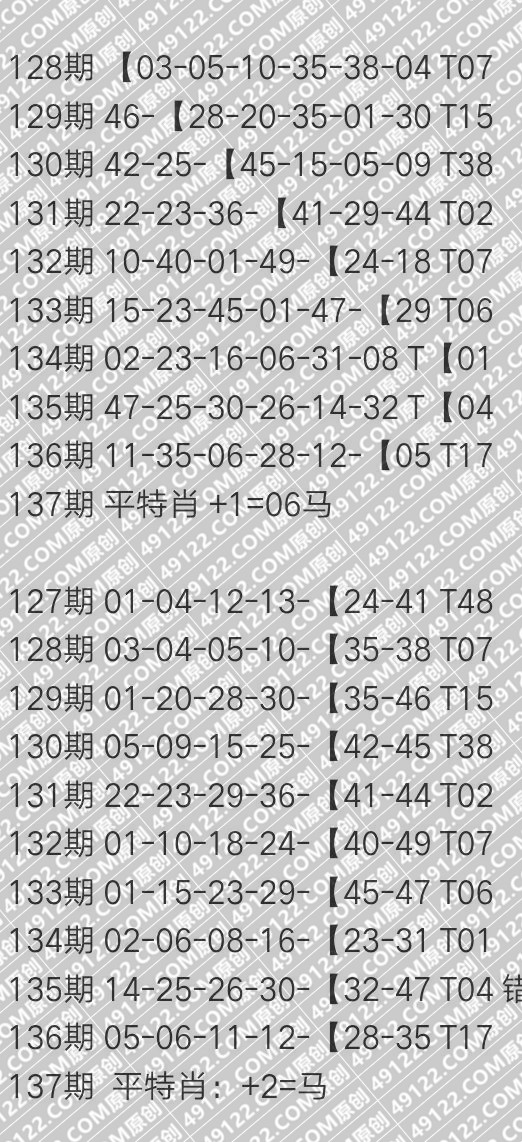 122期特码:02.03.05,06,07,08,10,11,12,14,19.21,22,24,25,26,27,29,32.34,35,36,38,39,41,42,43,44,48 |